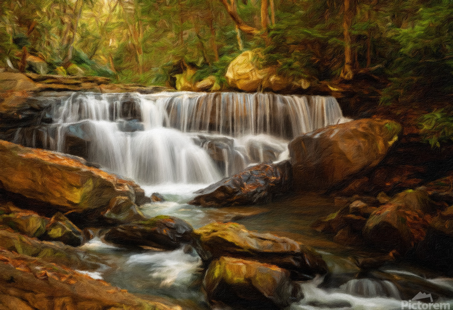 ABOUT THIS ARTWORK: IMPRESSIONISTIC DECKERS CREEK WATERFALL IN WEST VIRGINIA