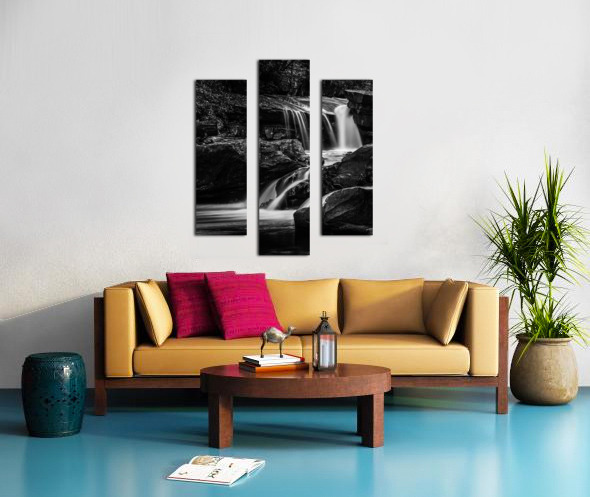 Monochrome Black and White Waterfall on Deckers Creek Canvas print