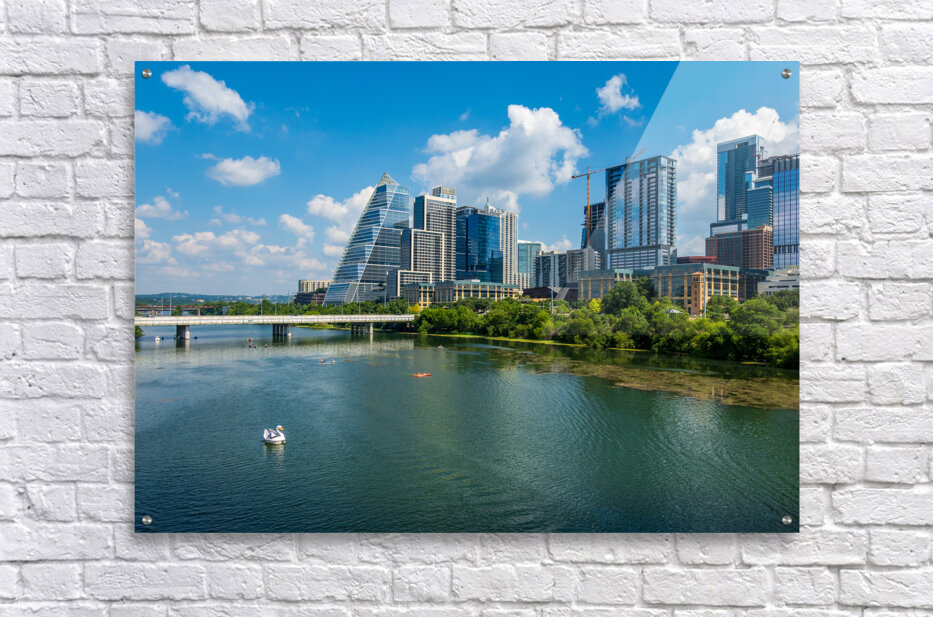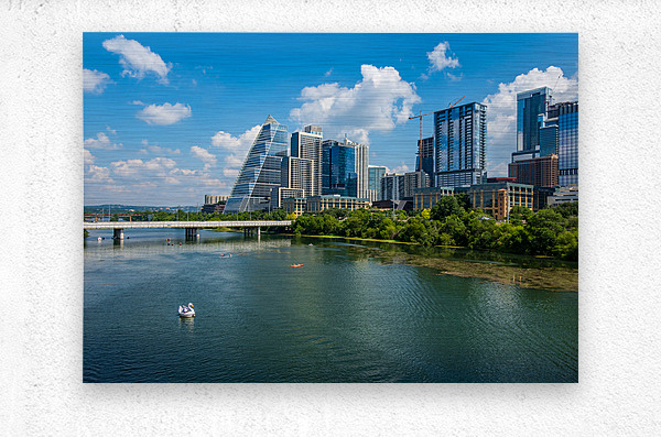 ABOUT THIS ARTWORK: OFFICE TOWERS VIEW - AUSTIN CITYSCAPE ACROSS LADY BIRD LAKE