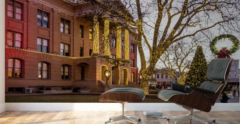 Christmas lights surround the Williamson County Courthouse in downtown Georgetown in Texas