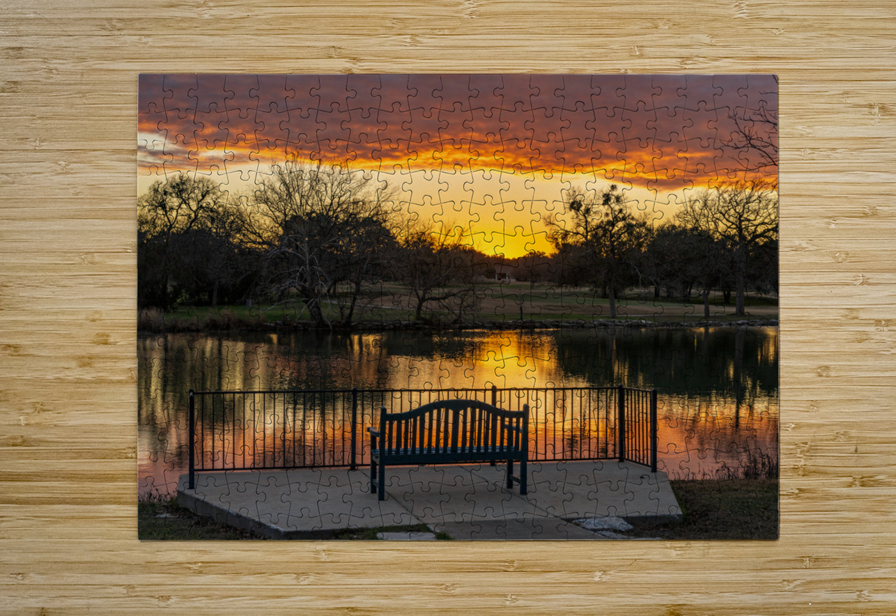 Dramatic sunset over Legacy Hills Park lake and golf course near Steve Heap Puzzle printing
