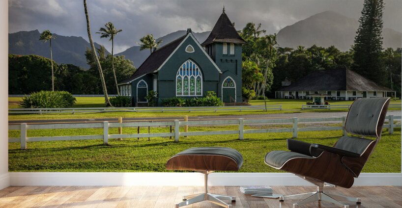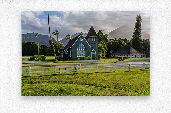 ABOUT THIS ARTWORK: WAIOLI HUIIA CHURCH STANDS IN HANALEI KAUAI WITH THE MAJESTIC