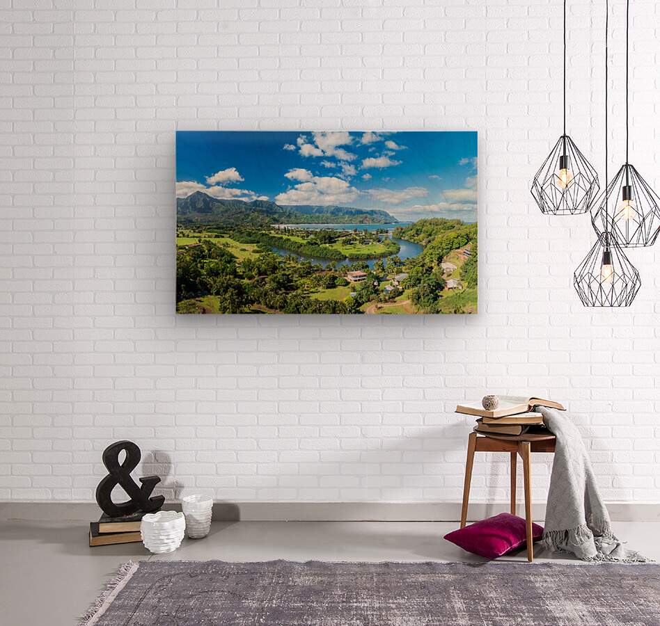 Get this artwork "Panoramic aerial view of Hanalei Bay verdant landscape " in a framed print.