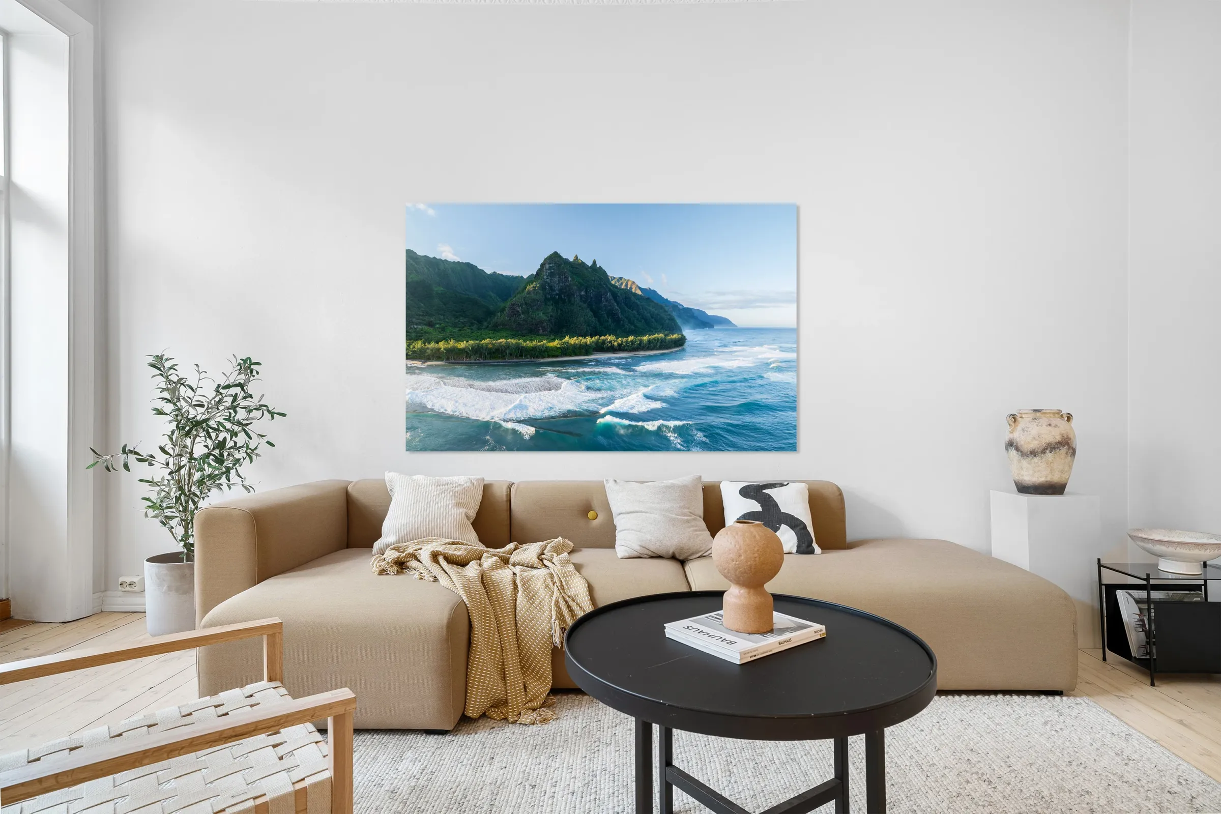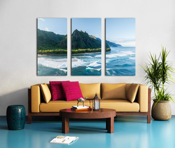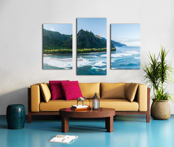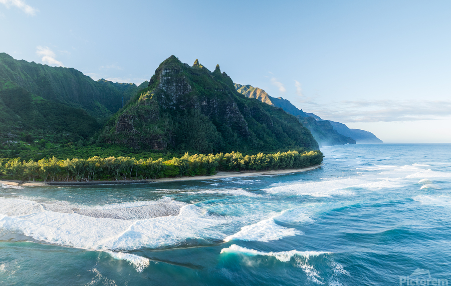 Get this artwork "View along Haena beach towards Kee Beach and Na Pali coastline" in a framed print.