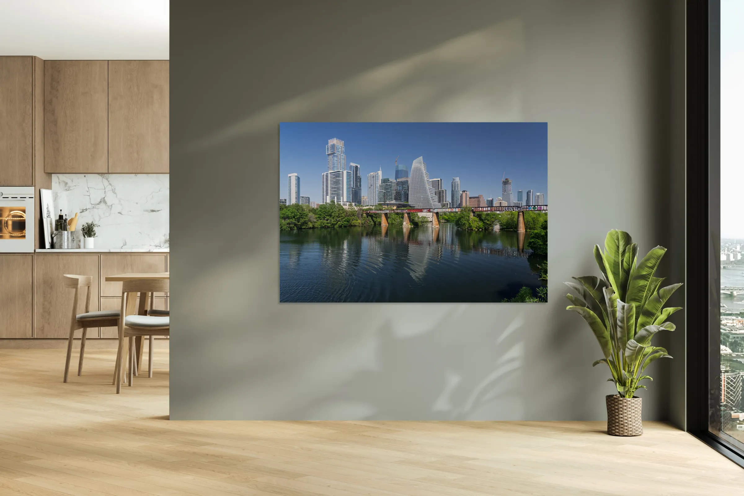 ABOUT THIS ARTWORK: VIEW ALONG COLORADO RIVER OF AUSTIN TEXAS SKYLINE
