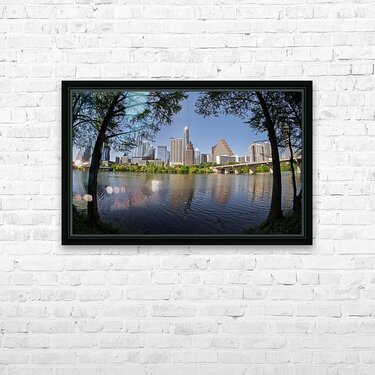 Get this artwork "Fisheye lens view of Austin skyline including Congress bridge" in a framed print.