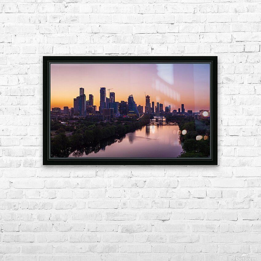Orange skies behind skyline of Austin Texas as sun starts to ris Picture Frame Printing