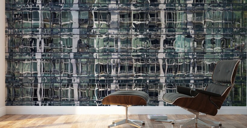 Complex abstract reflections of apartment tower in the windows of a condo tower in downtown Austin Texas