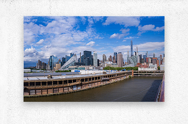 ABOUT THIS ARTWORK: TALL OFFICE AND APARTMENT BUIDLINGS ALONG THE WATERFRONT IN MANH