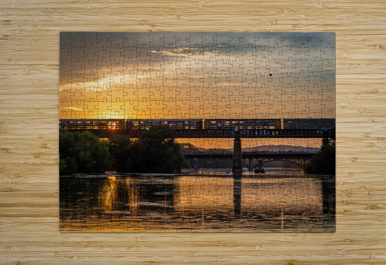 Freight train on the railroad bridge in Austin at sunset Steve Heap Puzzle