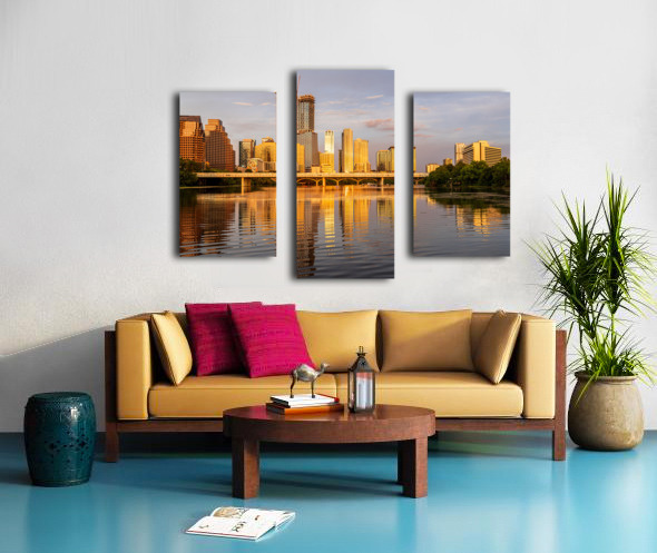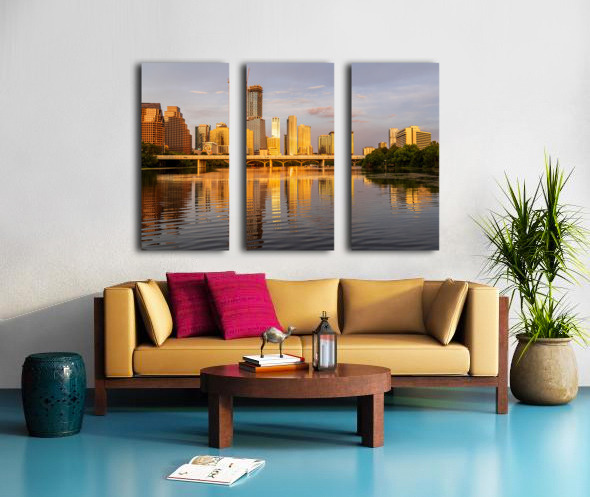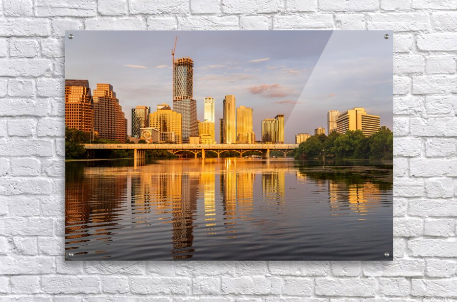 Get this artwork "Waterline dominates city skyline of Austin Texas at sunset in 20" in a framed print.