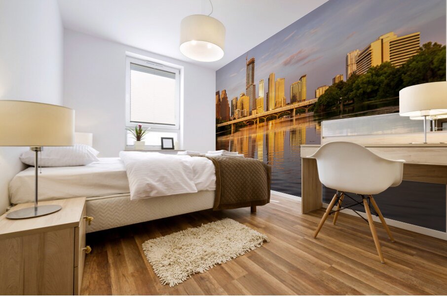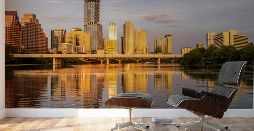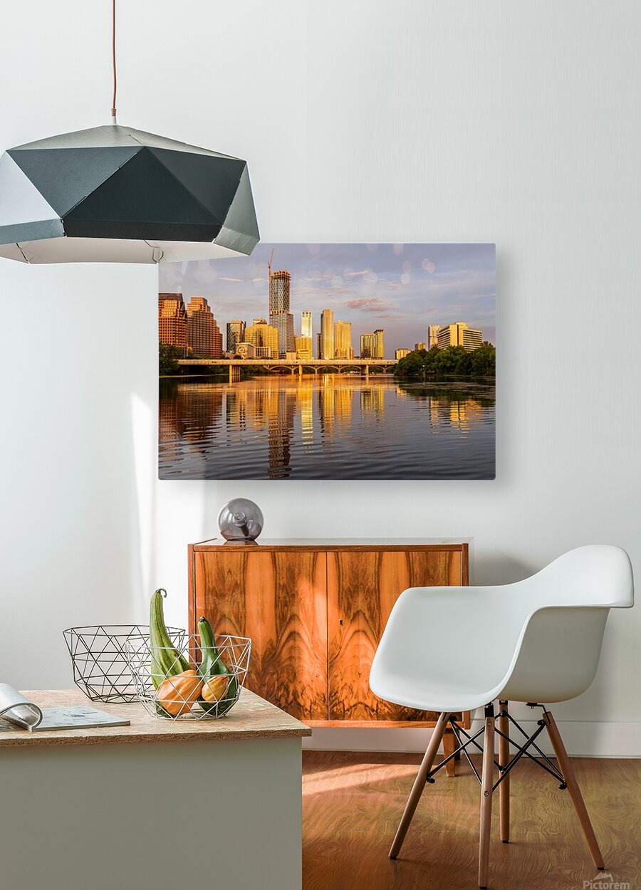ABOUT THIS ARTWORK: WATERLINE DOMINATES CITY SKYLINE OF AUSTIN TEXAS AT SUNSET IN 20