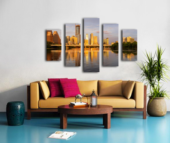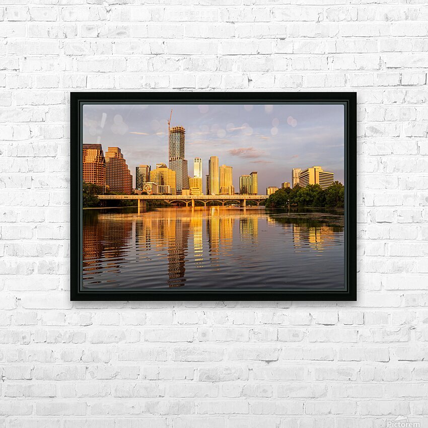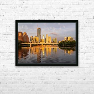 Waterline dominates city skyline of Austin Texas at sunset in 20 Picture Frame Printing