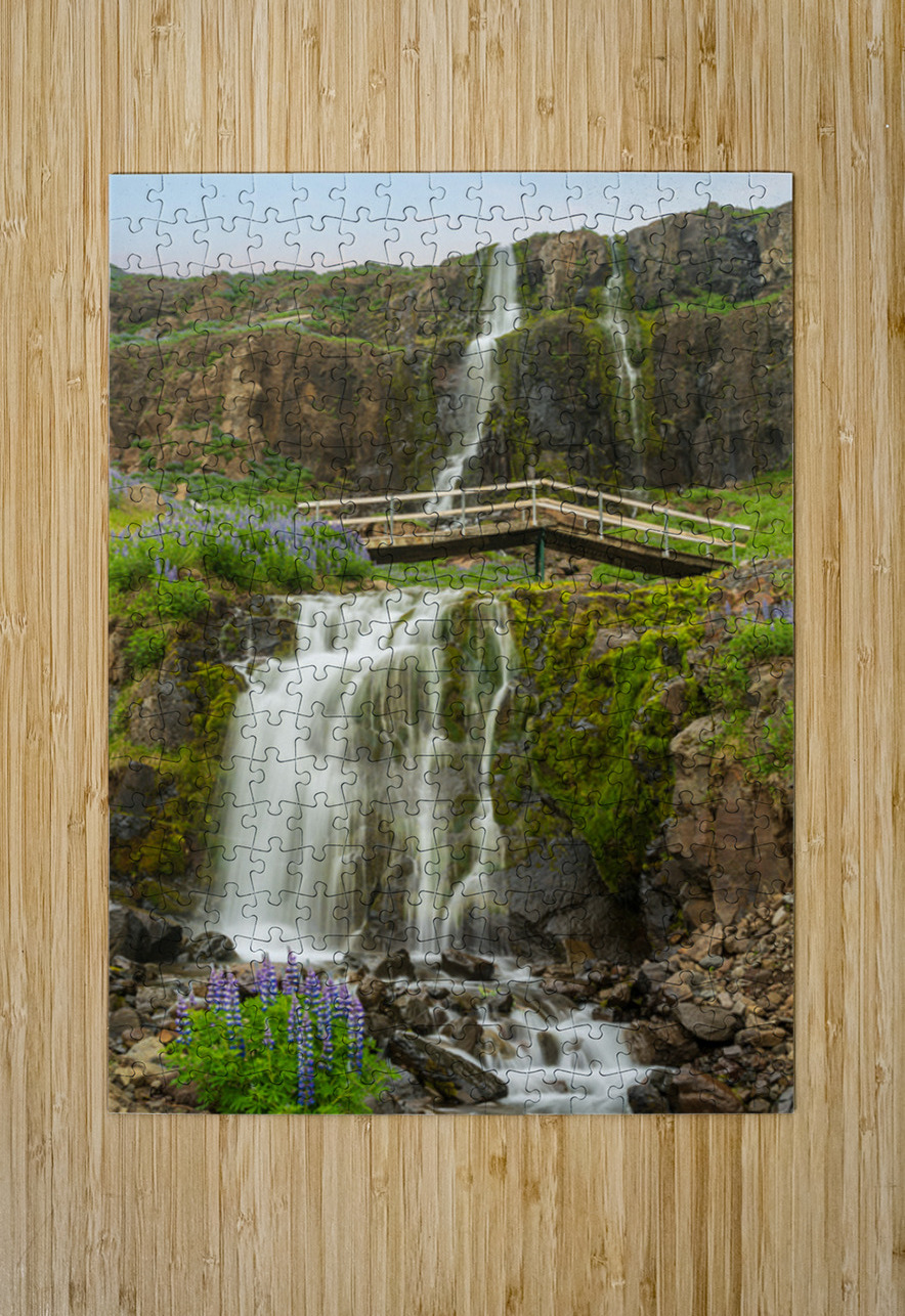 Budareyrarfoss waterfall cascades down the mountain by the port  Steve Heap Puzzle printing