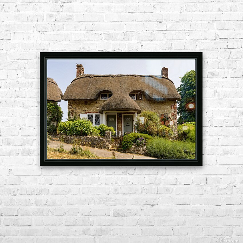 Pair of cute thatched cottages on hill in Godshill on the Isle o Picture Frame Printing