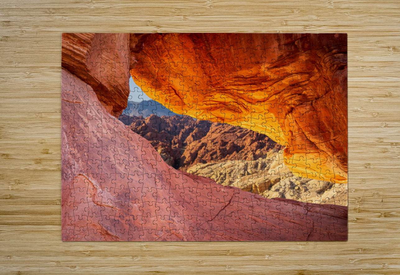 Natural arch on Atlatl Rock with scenic backgound added Steve Heap Puzzle printing