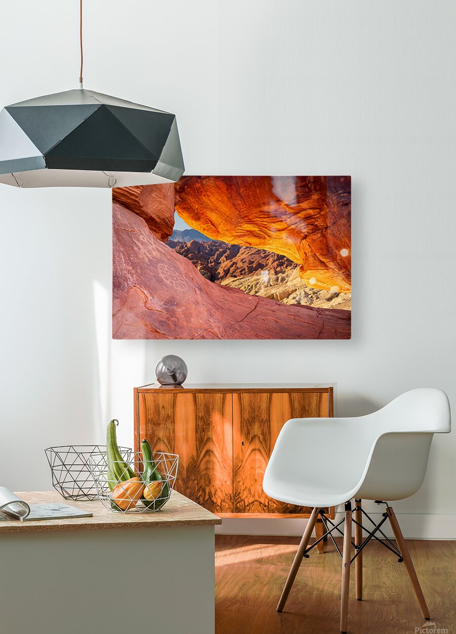 Natural arch on Atlatl Rock with scenic backgound added Canvas print