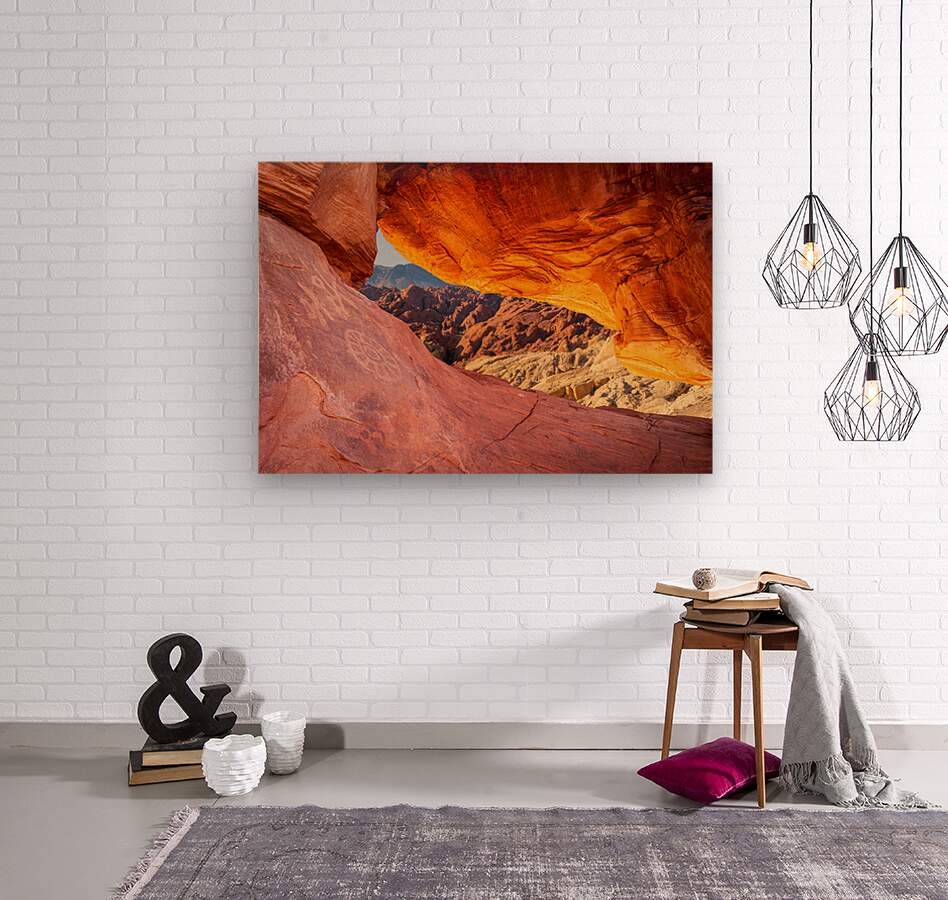 Natural arch on Atlatl Rock with scenic backgound added Picture Frame Printing