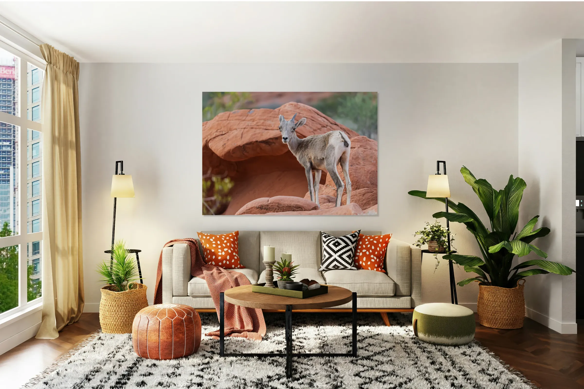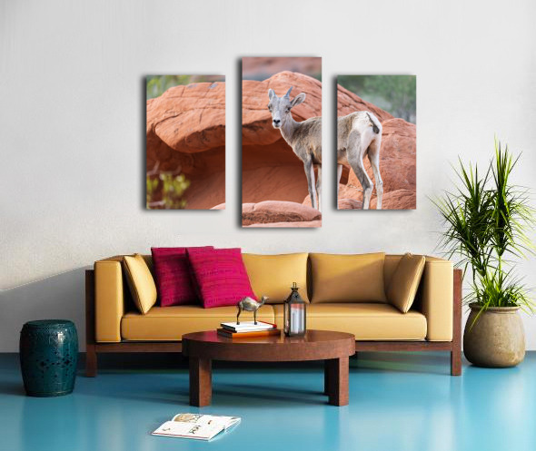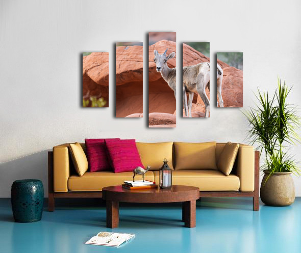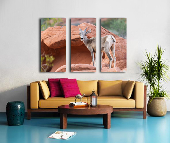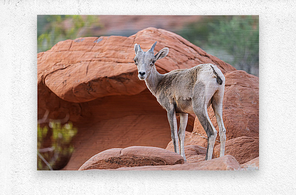 ABOUT THIS ARTWORK: BIGHORN SHEEP LAMB GRAZING AMONG FORMATIONS IN VALLEY OF FIRE ST