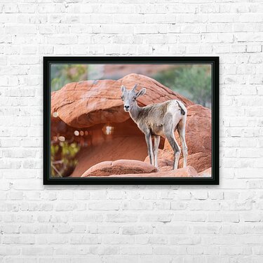 Bighorn sheep lamb grazing among formations in Valley of Fire st Picture Frame Printing
