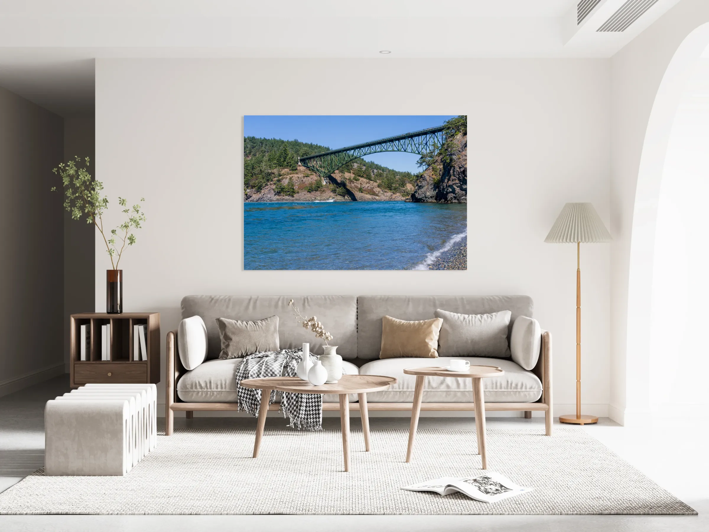 Turbulent water of Deception Pass under historic cantilevered br Canvas print