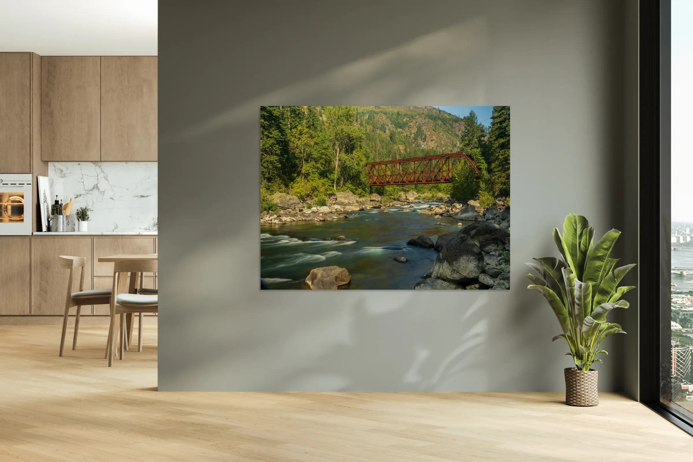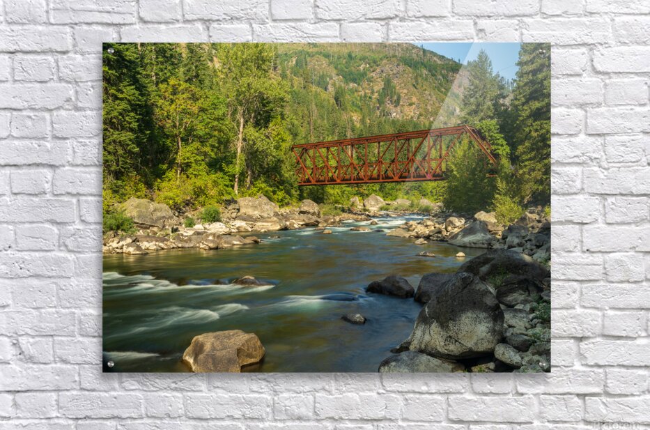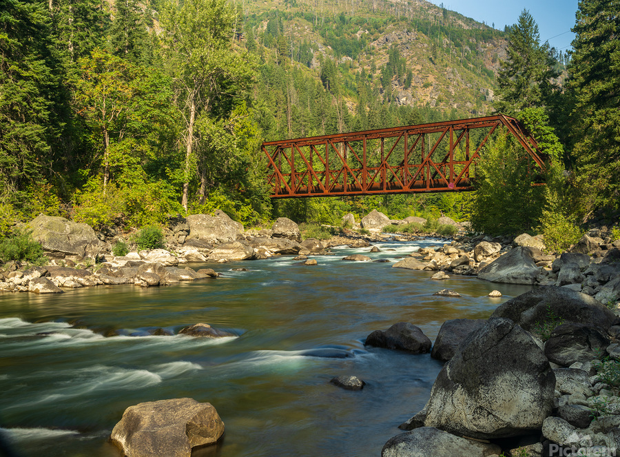 Get this artwork "Tumwater Canyon pipeline bridge over Wenatchee River in Washingt" in a framed print.