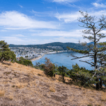 View from the Washington Park overlook on the loop road over the town of Anacortes on FIdalgo Island WA