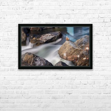 Get this artwork "Pebbles balanced on rocks in raging river illustrating resilienc" in a framed print.