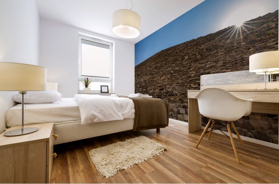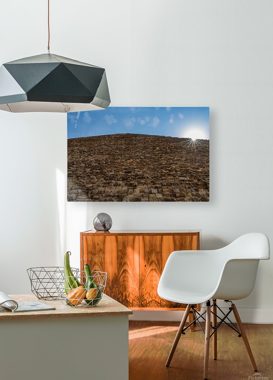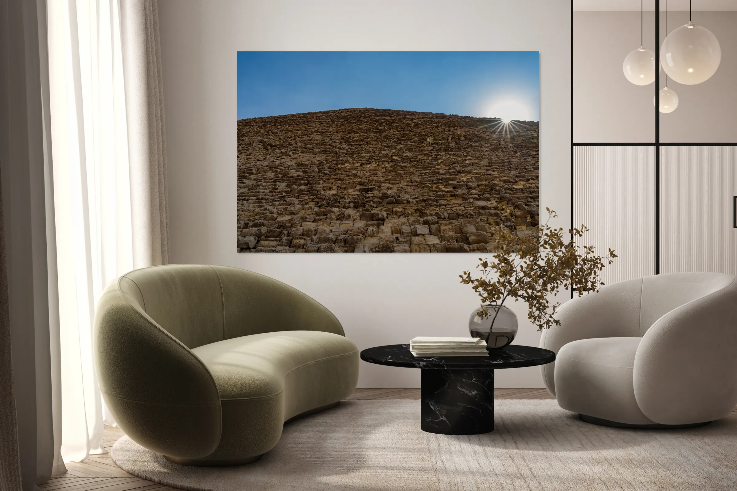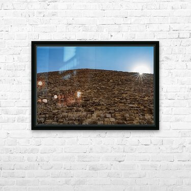 Get this artwork "Great Pyramid of Giza with the sun flaring over the top edge" in a framed print.
