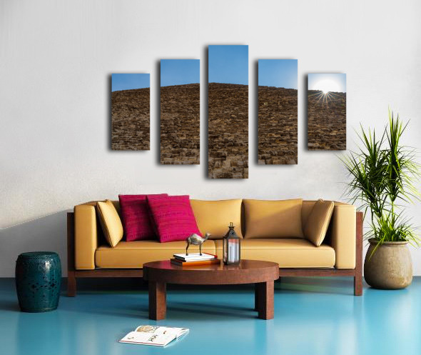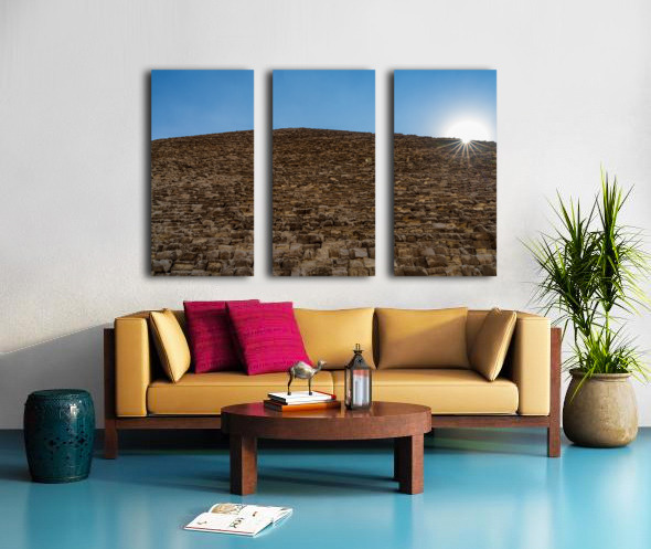 Great Pyramid of Giza with the sun flaring over the top edge Canvas print