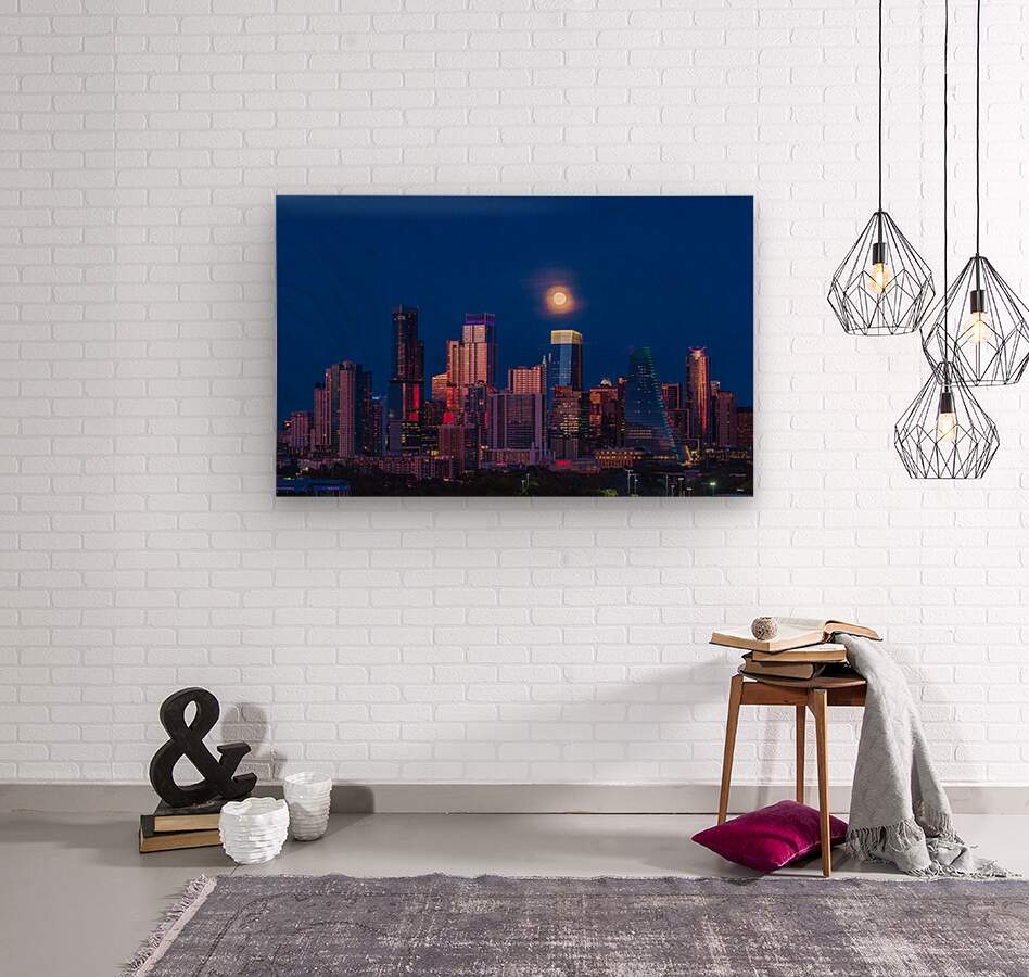 Harvest moon in the Austin skyline at sunset in Texas Canvas print