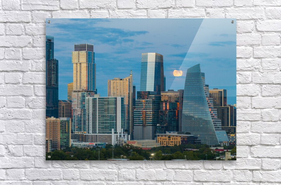 Harvest moon by Google building in Austin skyline Texas Picture Frame Printing