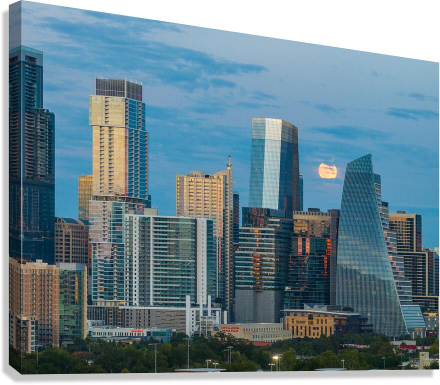 Harvest moon by Google building in Austin skyline Texas Canvas print