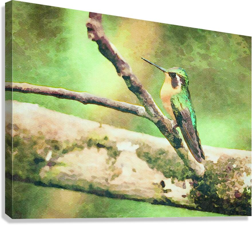 ABOUT THIS ARTWORK: WHITE THROATED MOUNTAINGEM HUMMINGBIRD PERCHED ON A TWIG IN COS