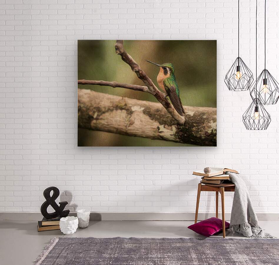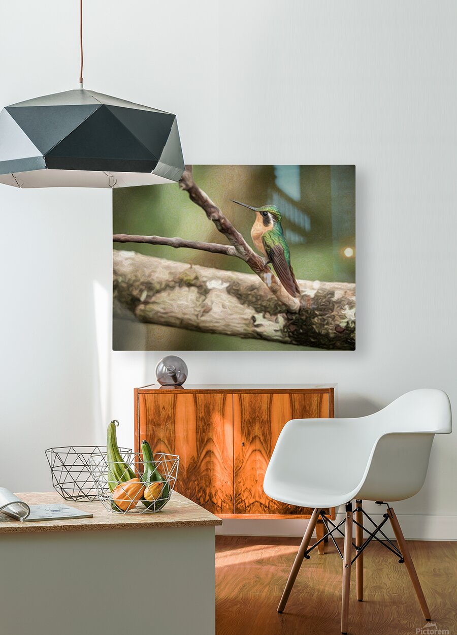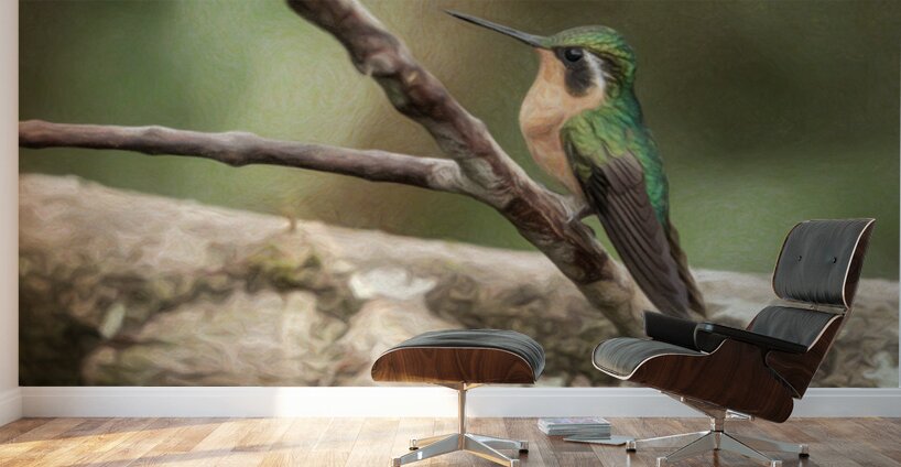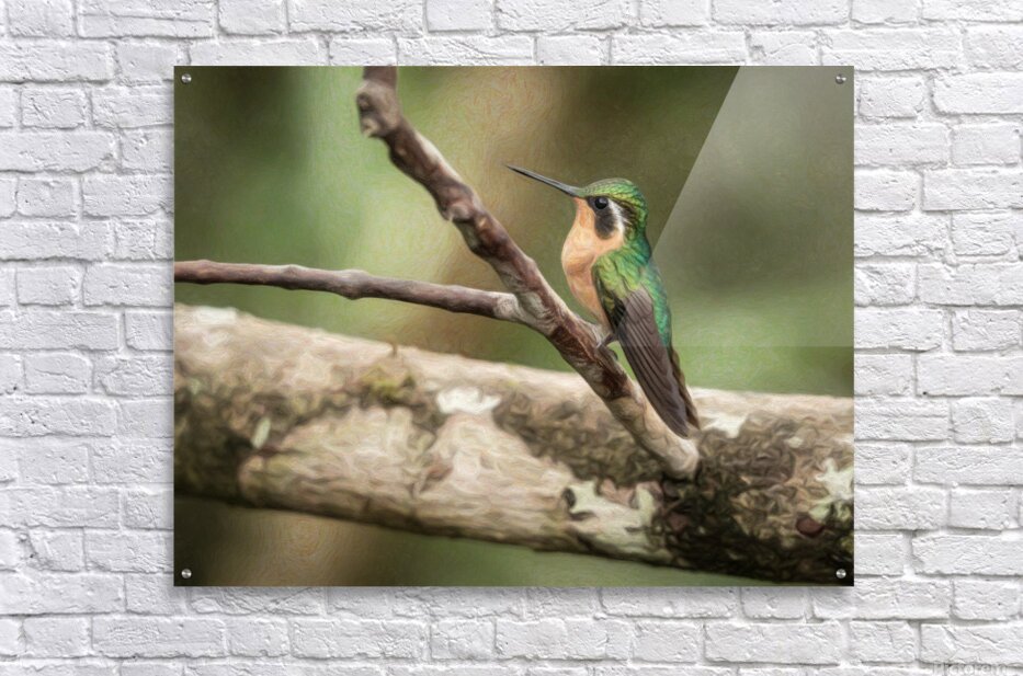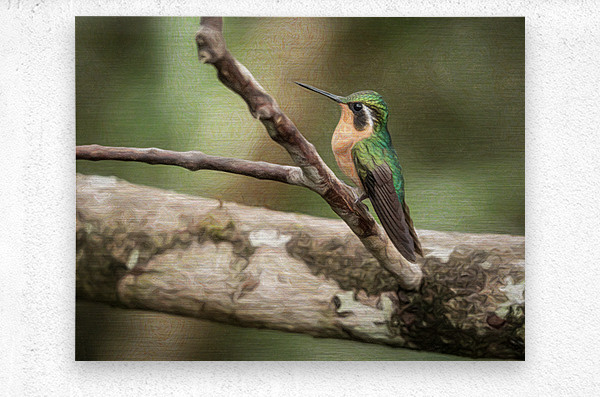 ABOUT THIS ARTWORK: WHITE THROATED MOUNTAINGEM HUMMINGBIRD PERCHED ON A TWIG IN COS