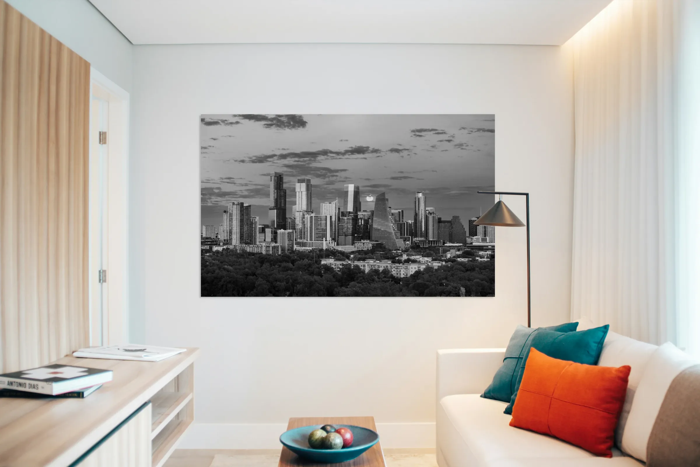 Monochrome view of harvest moon in the Austin skyline Canvas print