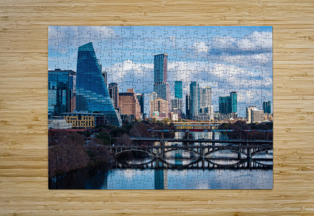 Close Up of Austin Skyline with the Sail Building and River Brid Steve Heap Puzzle printing