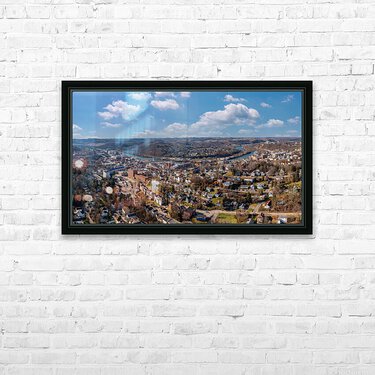 Aerial drone view of the downtown and university in Morgantown Picture Frame Printing
