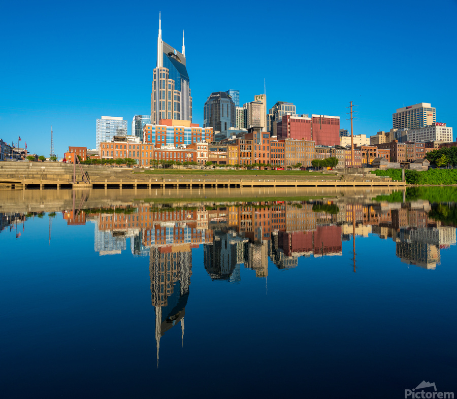 ABOUT THIS ARTWORK: SKYLINE OF NASHVILLE IN TENNESSEE WITH CUMBERLAND RIVER