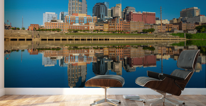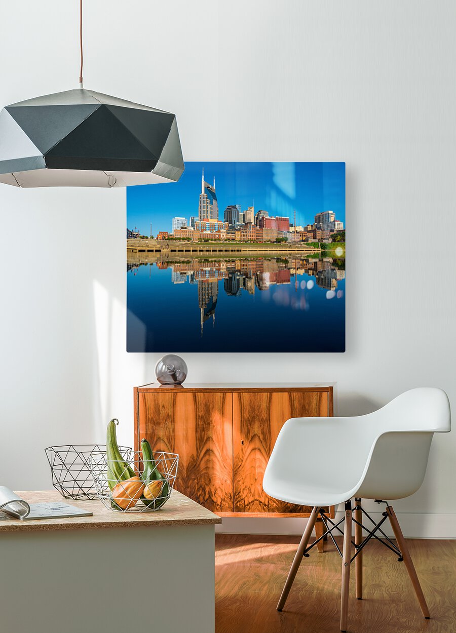 Skyline of Nashville in Tennessee with Cumberland River  Wood print
