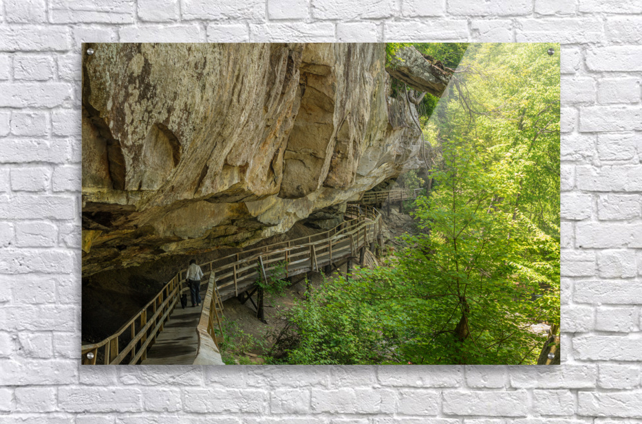 Wooden boardwalk and walkway under the cliffs in the Audra State Park near Buckhannon in West Virginia