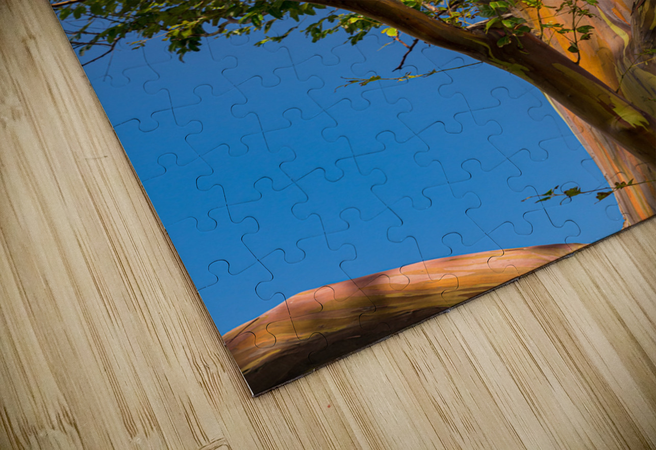 Pattern of branches of rainbow eucalyptus trees against blue sky on Kauai Steve Heap Puzzle printing