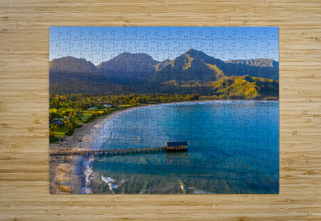 Aerial drone shot of Hanalei bay Steve Heap Puzzle printing
