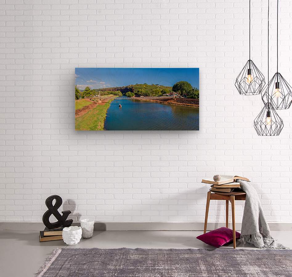 Swinging bridge at Hanapepe on Hawaiian island of Kauai Wood print