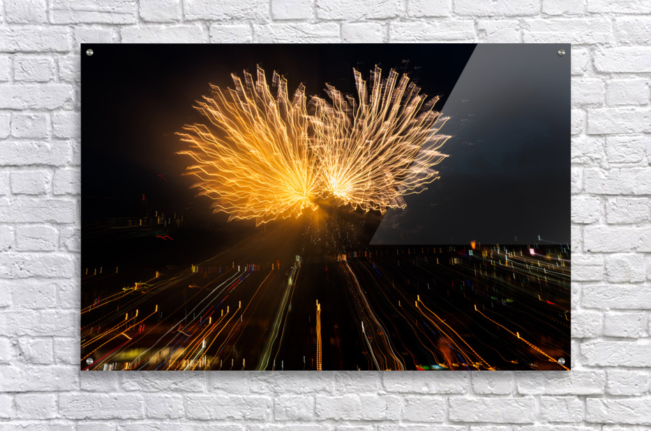 Abstract treatment of fireworks over Pittsburgh Picture Frame Printing