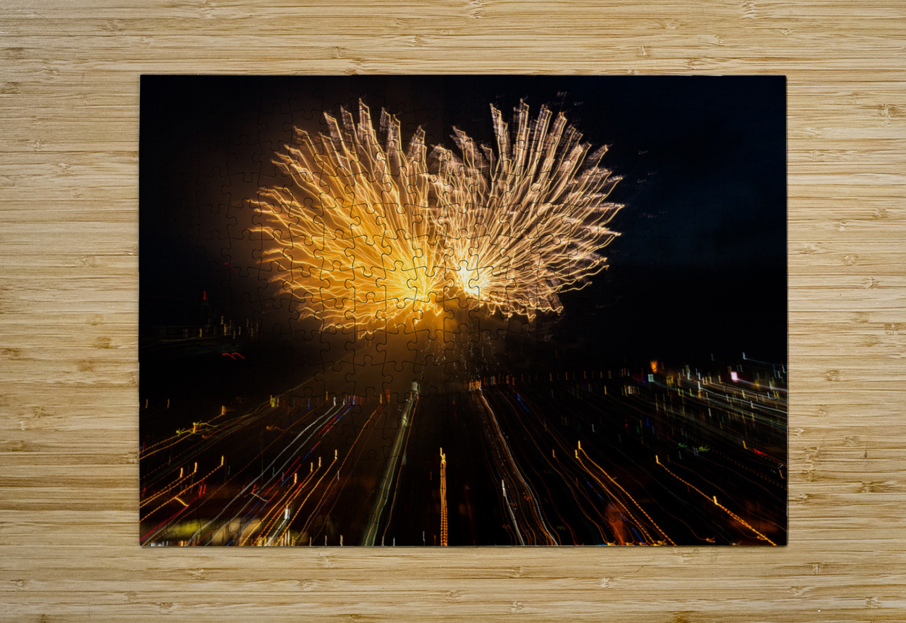 Abstract treatment of fireworks over Pittsburgh Steve Heap Puzzle printing
