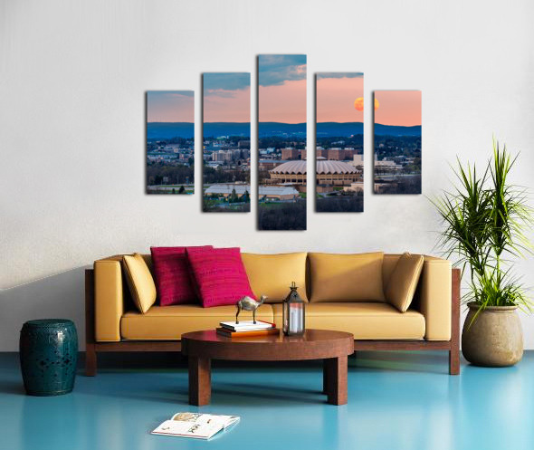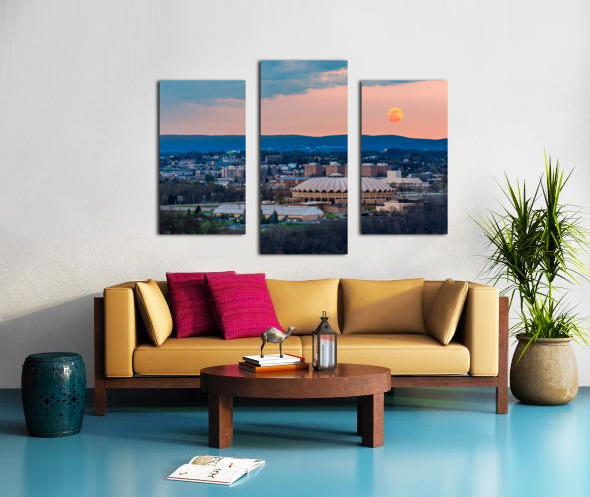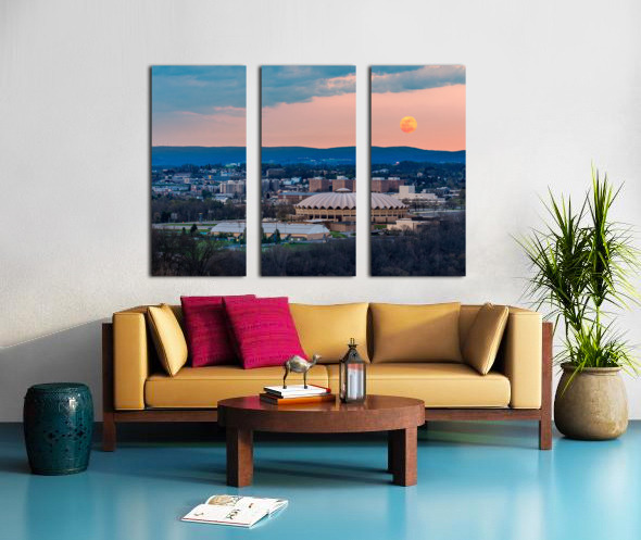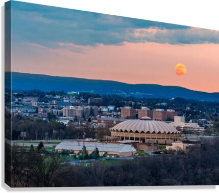 Super pink moon rises above the WVU coliseum on Evansdale campus Canvas print