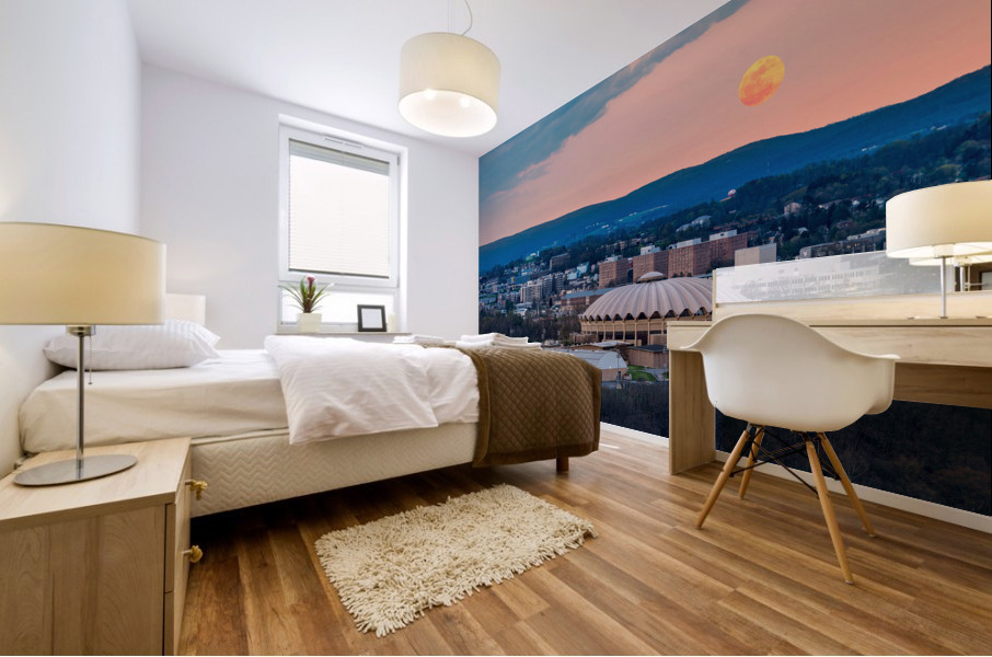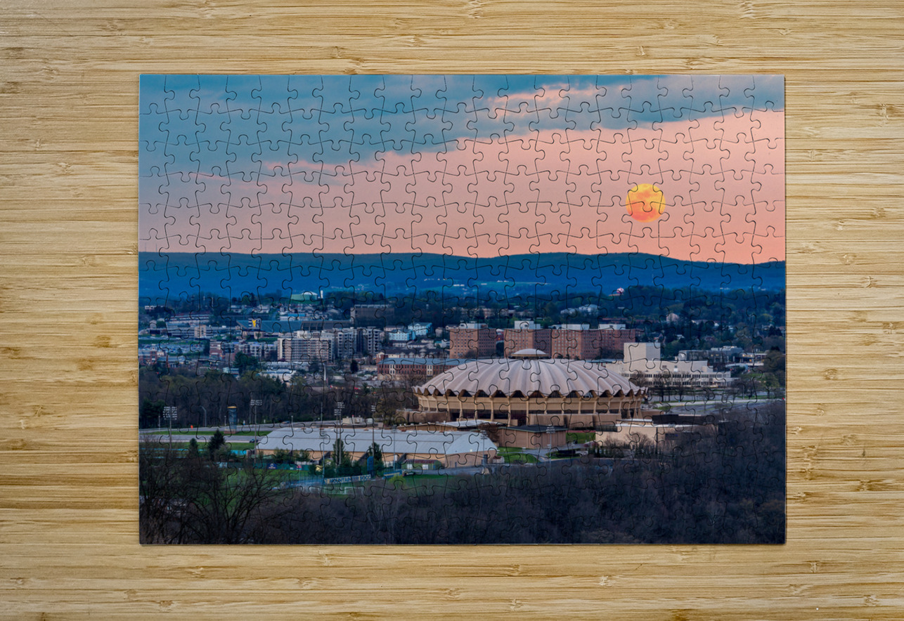 Super pink moon rises above the WVU coliseum on Evansdale campus Steve Heap Puzzle printing