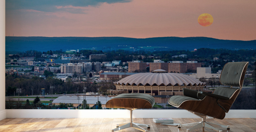 ABOUT THIS ARTWORK: SUPER PINK MOON RISES ABOVE THE WVU COLISEUM ON EVANSDALE CAMPUS