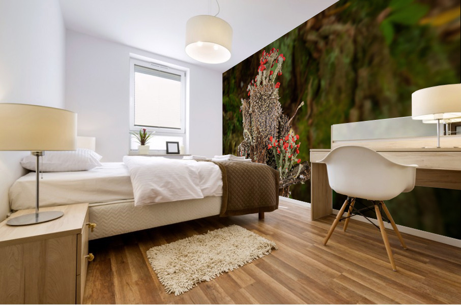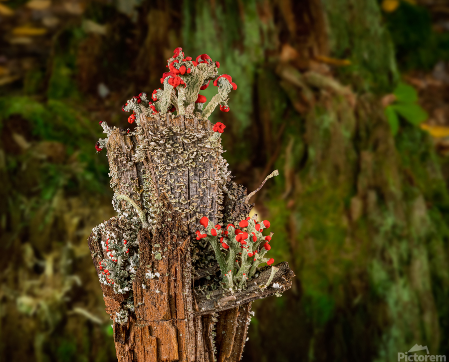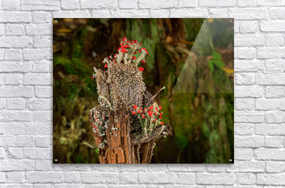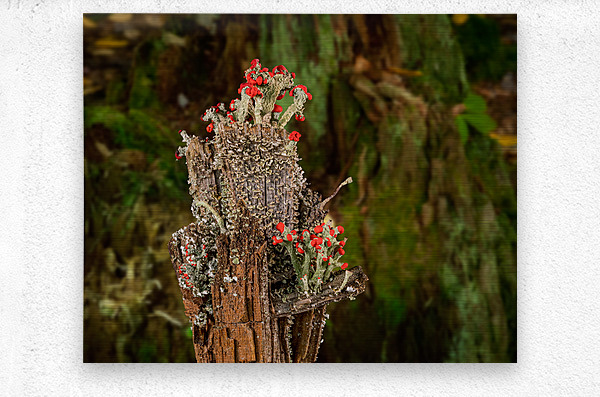 Cladonia cristatella or British Soldiers Lichen or algae Wood print